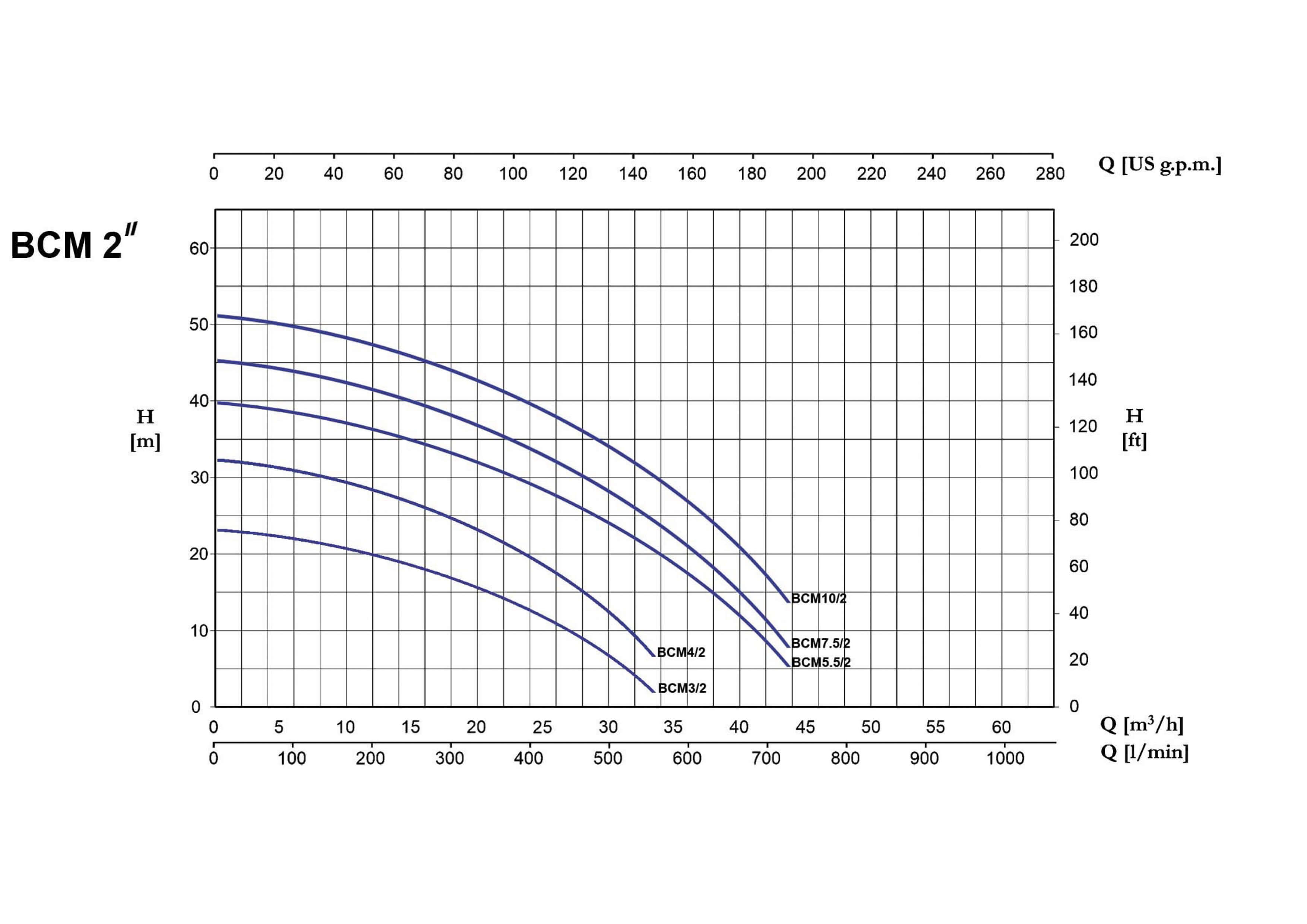 الکترو پمپ مدل BCM در ابعاد ۲x۲ و ۳x۳ و ۴x۴ بر اساس نوع مصرف و با قدرت ۳ تا ۲۵ اسب بخار به همراه پروانه چدن استیل و یا برنزی بر طبق سفارش تولید میگردد و آب بندی پمپ از نوع سیل مکانیکی میباشد ، این نوع پمپ در جت جکوزی ، استخر ، صنایع عمرانی ، کشاورزی و صنعتی مورد استفاده قرار میگیرد. این نوع پمپ به صورت تمام استیل و یا تمام برنز نیز تولید میگردد که در صنایع مواد غذایی موارد بهداشتی و تمامی موارد با خورندگی یا سایش بالا مورد استفاده قرار میگیرد . طراحی جدید این پمپ که با مهندسی معکوس از پنتاکس ایتالیا طراحی گردیده به دلیل افزایش قطر پروانه و حلزونی پمپ راندمان عملکرد بهینه شده است در نتیجه هد (m) و دبی (Q (m3h نسبت به مدل قدیمی این پمپ افزایش چشمگیری داشته است.